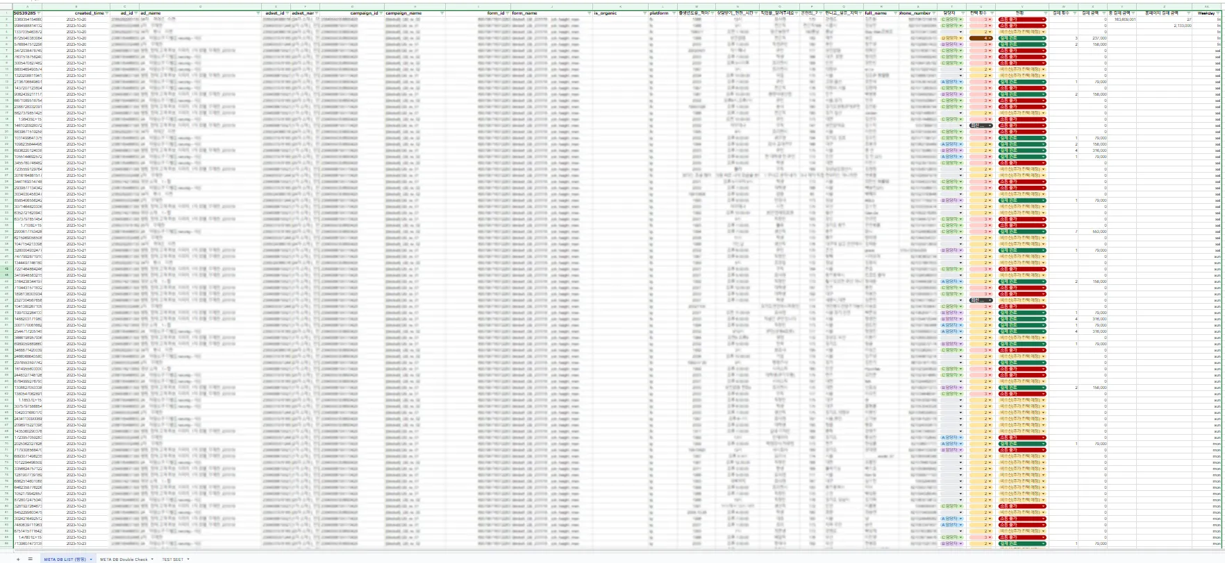 DB 실시간 연동 및 스프레트 시트로 실시간 체크&성과 추적이 가능한 환경 구축(단계에서 브랜드 자체 개발로 스톱)