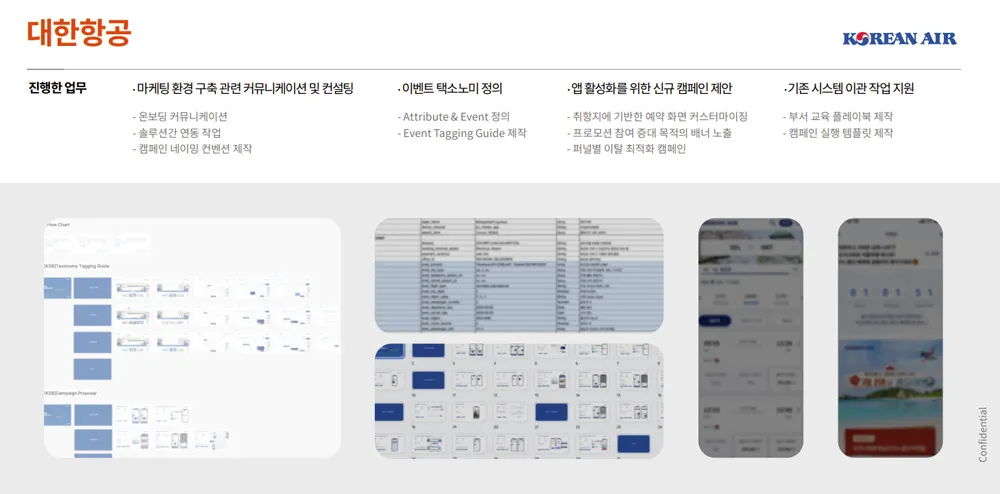 “고객 데이터를 통합하고 어떤 캠페인을 진행할지도 기획했죠. 예를 들면 비행기 출발 전 30일엔 호텔 예약 푸시를, 14일 전엔 렌터카 예약 푸시를, 3일 전엔 여행자 보험 가입 푸시를 보내는 거죠. CRM(고객관계관리) 솔루션 사용 교육과 매뉴얼 등을 만들었습니다. 대한항공 프로젝트는 구축 단계입니다. 개인화 마케팅으로는 제일 의미 있었던 프로젝트입니다.”