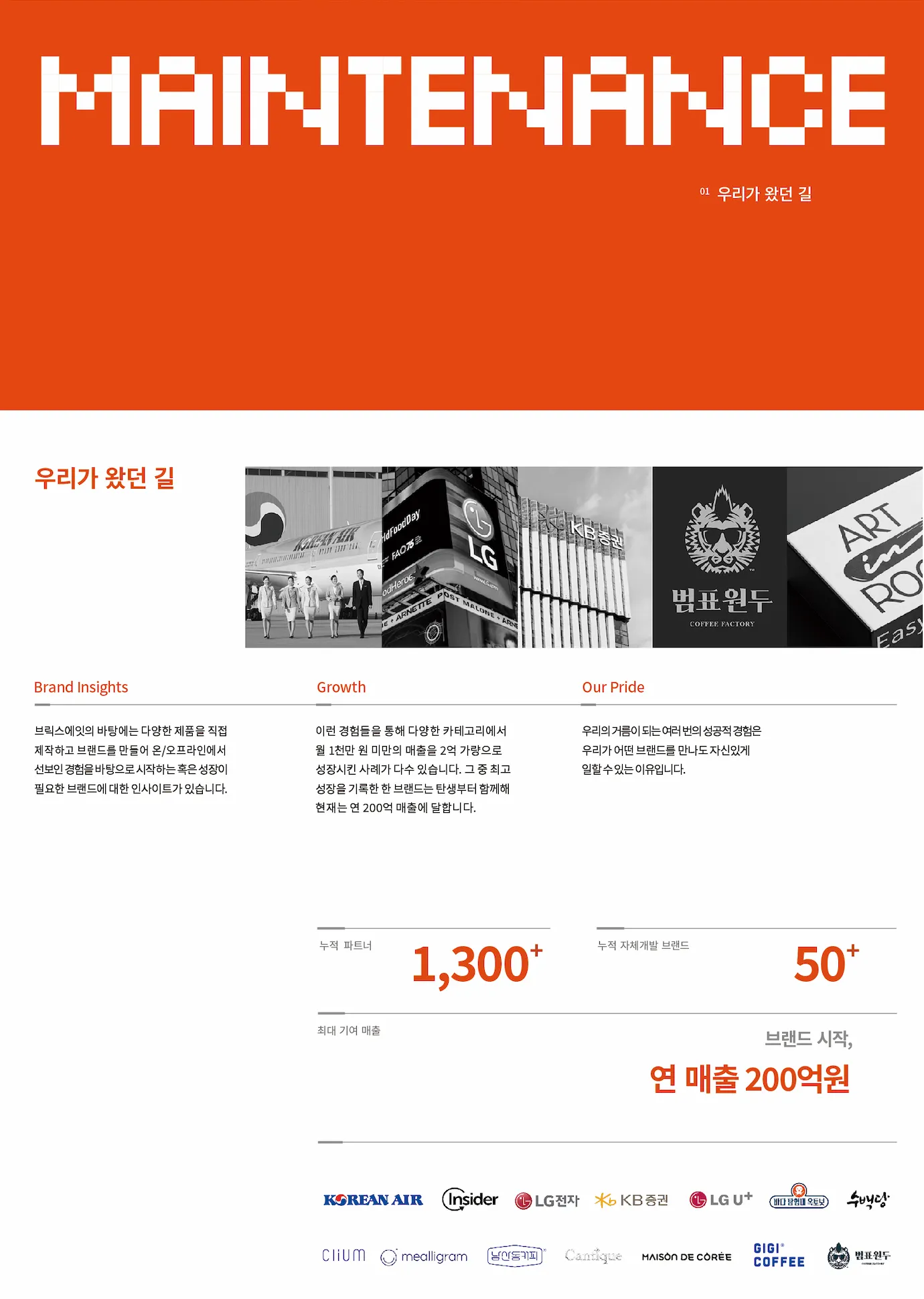 창업 5개월 만에 우리는 대한항공, LG전자, LG Uplus, KB증권 등의 큰 기업과도 함께 하고 있으며, 작지만 매력적인 온/오프라인 브랜드들과도 다양한 프로젝트를 진행하고 있습니다.